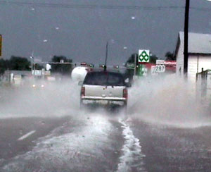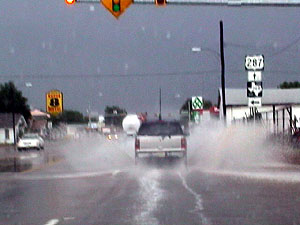 Once in Childress we encountered street flooding. The cell rained itself out with speed shear too poor to keep the updraft dry. What went up came straight back down again and flooded out the cell and Childress, TX.