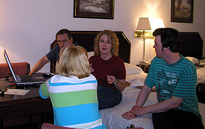 ![]() Click here for a more detailed blowup map. Once we got up Sunday morning we adjusted our target to Hobbs, NM after seeing the latest forecast model data and some observations and satellite. Peggy gave the guests a morning briefing.