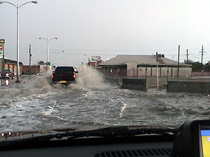 Reports came in that major street flooding was occuring in Carlsbad. Once in Carlsbad we got great video and a first-hand experience of the flooding as our vehicle's tires were covered at times. [3.1 MB]