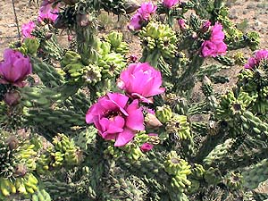 The risk seemed slight at best and our concern was to get in a position to be able to chase in Colorado on Monday. So, we headed towards Roswell via Lovington, NM. East of Lovington, NM we stopped to take photos of some Blooming Cholla growing along the road. This is just a beautiful flowering cactus with primarily pink but also some yellow flowers.