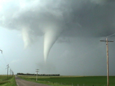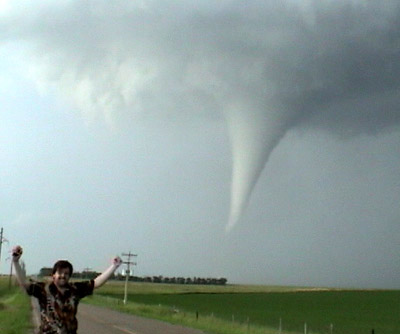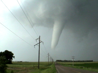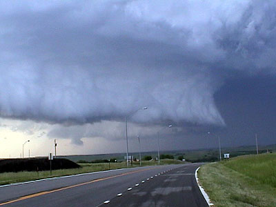 View the complete video footage of the tornado from wall cloud to dissipation. This video clip is in AVI format and is compressed using the DivX codec. If you do not have Windows Media Player versions 7 or 9 and the DivX codec installed, I do not recommend trying to view this file. You can download Media Player and DivX from download.com if you need to. The file is over 17 meg, so it is recommended you only try to view this if you have a high speed, broadband connection.