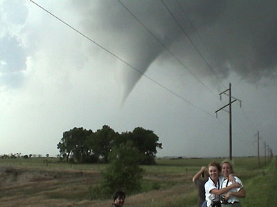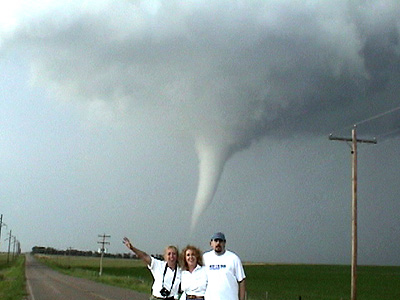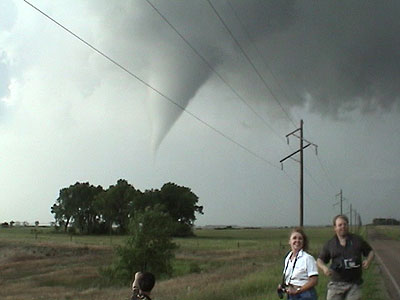 StormTours.com took out a couple customers on a 1 day tour to Stuart, NE on June 9, 2003 and had great success. Leaving Plymouth, MN at 6 a.m. Monday morning we headed southwest targeting O'Neill, NE. Along the way we stopped at KOOL 98, an Oldies station in Mitchell, SD where our friend and on-air personality Kory Hartman allowed us to use the station's high speed Internet access for some last minute data. After viewing the latest surface observations and satellite imagery, we decided that O'Neill was still a good target, so we headed south out of Mitchell. While on the way down, the Storm Prediction center issued a tornado watch box for our area. We continued south to O'Neill where we were forced to stop at a library for data since our Internet connectivity through cell phone was unsuccessful. Bill Doms got there first and got all of the data up. By the time Peggy, Mel, myself and our guests Erik and Mike got there Bill had all the data ready to show us. We all agreed that things looked good just a bit to our north. Cumulus were begining to pop just northwest of O'Neill. Dave Floyd, the Warning Coordination Meteorologist from Goodland, KS was also chasing in the area. He talked to him on the phone and he along with some other tour groups in the area were all in agreement to head north to the cumulus field.